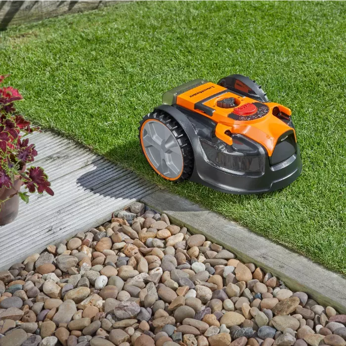 Wenn der Mäher eine klar definierte Rasenkante nicht erkennen kann, bleibt er möglicherweise nicht innerhalb der Rasenfläche. Nackte Erdkanten, die zu Unkraut werden können, oder Blumenrabatten mit niedrigen Pflanzen können von der OGR-Software (Optical Grass Recognition) als Gras interpretiert werden. Aus diesem Grund empfehlen wir, dass entweder erhöhte Kanten, eine harte Umrandung aus Pflaster oder Kies oder Mauern und Zäune die besten Optionen rund um den Rasen sind.