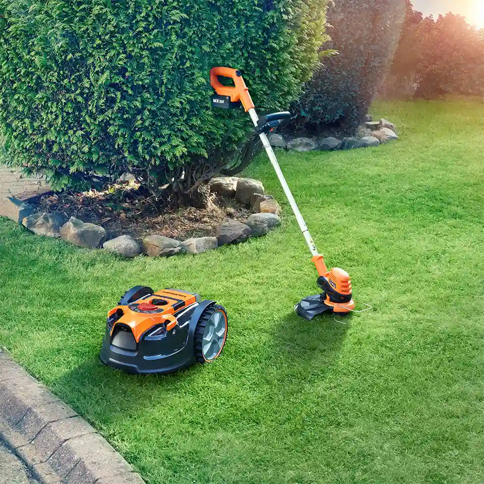 LawnMaster OcuMow 16 MX24V Drop and Mow robotmaaier en draadloze grastrimmer set