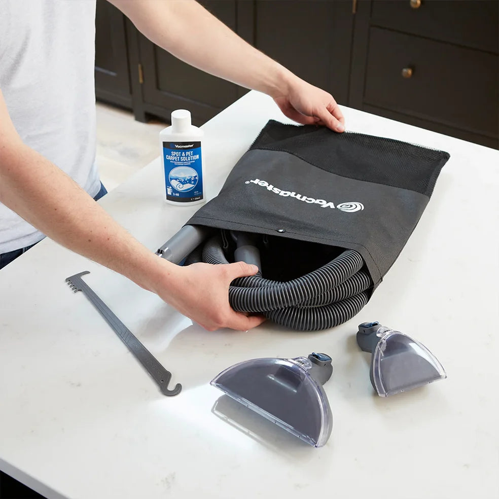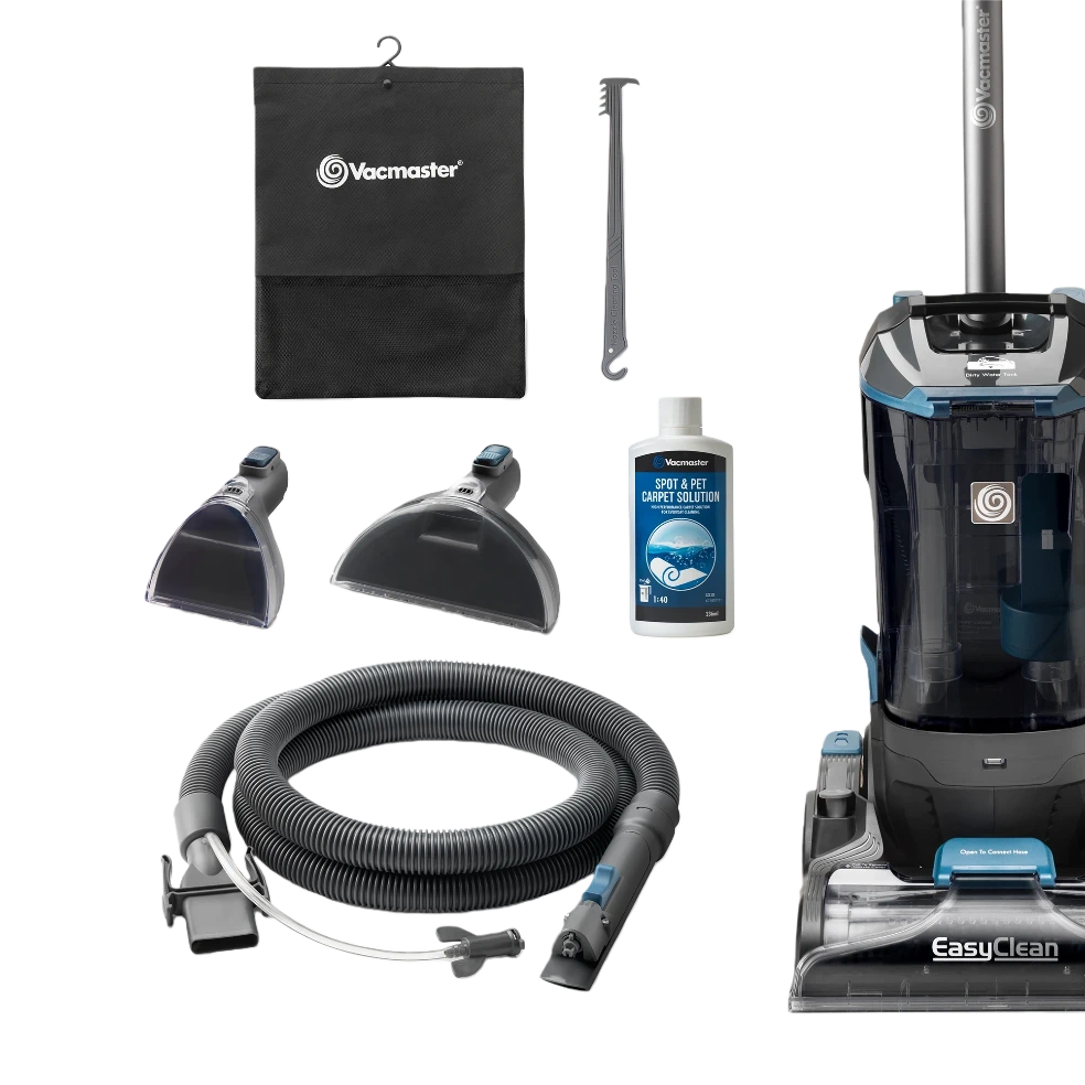 Vacmaster Home Carpet Cleaner ger dig storleken, kraften och räckvidden som behövs för att enkelt rengöra hela ditt hem på djupet. Dubbla roterande borstvalsar, ett högtrycksmunstycke och en kraftfull sugmotor ger exceptionell rengöringsprestanda genom att tränga djupt in i fibrerna i mattor och möbeltyger. Tar bort envisa fläckar och ingrodd smuts, även från de mest trafikerade områdena.