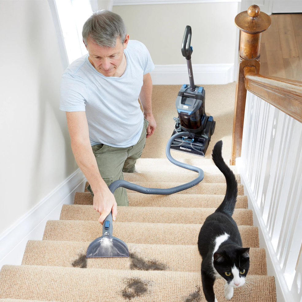 Med extra lång räckvidd och en mångsidig slang med utbytbara munstycken kan du enkelt städa även ovanför golvet. Denna kraftfulla upprättstående mattvätt är idealisk för livliga hem med barn och husdjur och håller ditt hem fräscht, rent och uppfräschat.