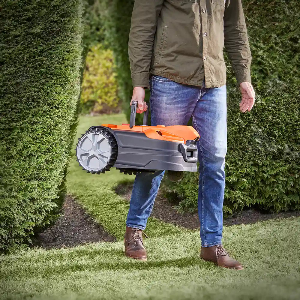 Kameran känner av skillnaden mellan ytstrukturer och färger, till exempel gräs eller stenbeläggning, och ultraljudssensorerna känner av hinder som är högre än 16 cm, såsom växter, trädgårdsmöbler, murar och staket, vilket innebär att det inte behövs någon avgränsningskabel.