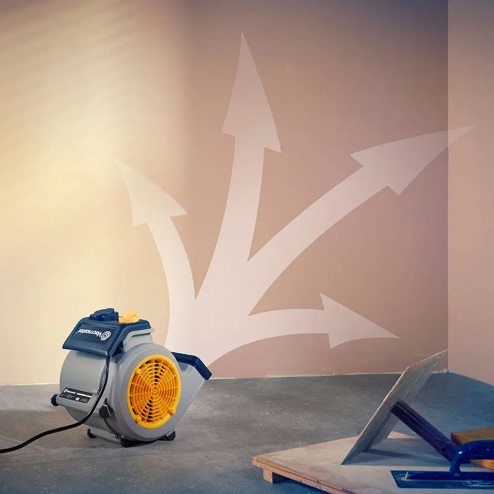 Motorn på 124 W driver 245 liter omgivningsluft per sekund för snabb torkning och kylning. Perfekt för torkning av våta mattor, gips, avjämningsmassa, betong eller färg. Eftersom den inte använder värme är risken minimal för att känsliga ytor som gips ska deformeras, spricka eller bilda blåsor.